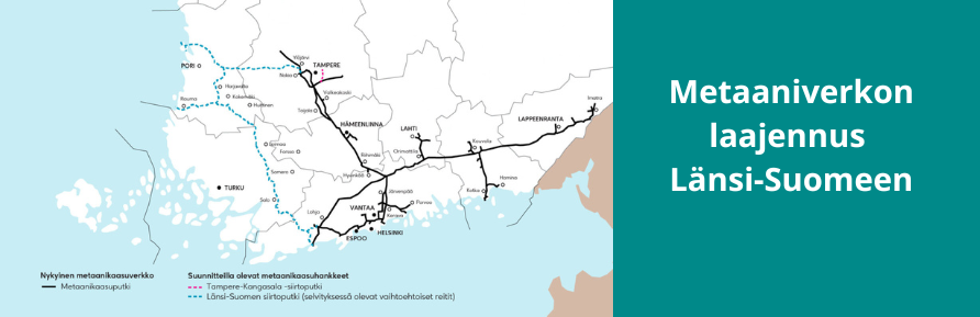Valtion kaasuyhtiö Gasgrid kertoi loppuvuodesta 2025 selvittävänsä kansallisen metaanin siirtoverkon laajentamista Satakuntaan. Alustavien suunnitelmien mukaan laajennuksen uudet päätepisteet sijoittuisivat Poriin ja Raumalle, joihin on suunnitteilla e-metaanihankkeita. Länsi-Suomen laajennus voitaisiin liittää osaksi olemassa olevaa metaaniverkkoa Nokian tai Inkoon suunnasta.