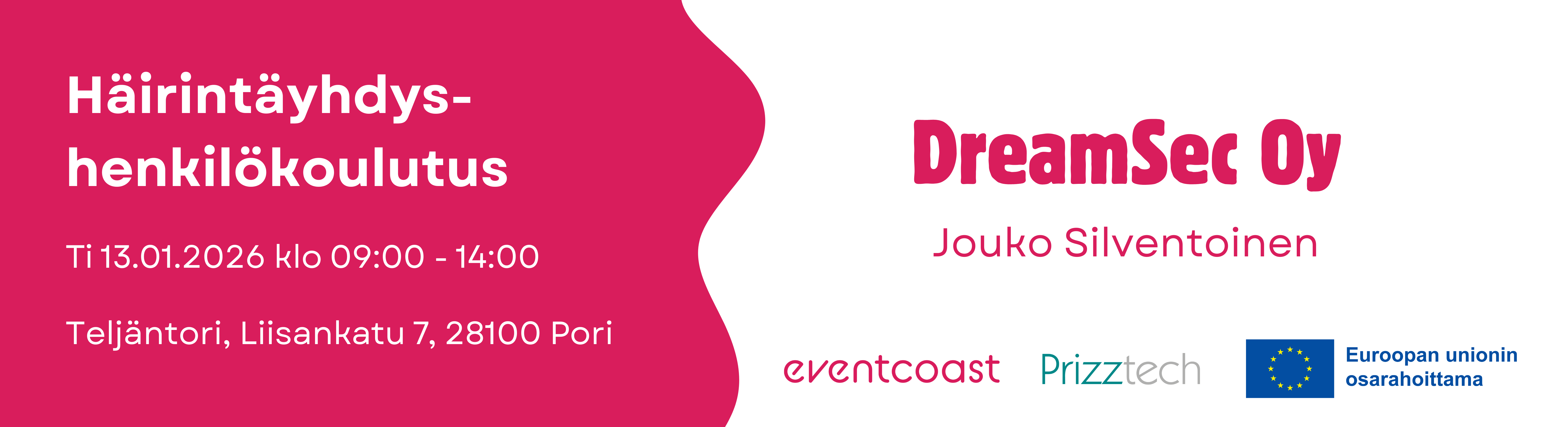 Kouluttajana toimii häirintäyhdyshenkilökouluttaja Jouko Silventoinen, DreamSec Oy.