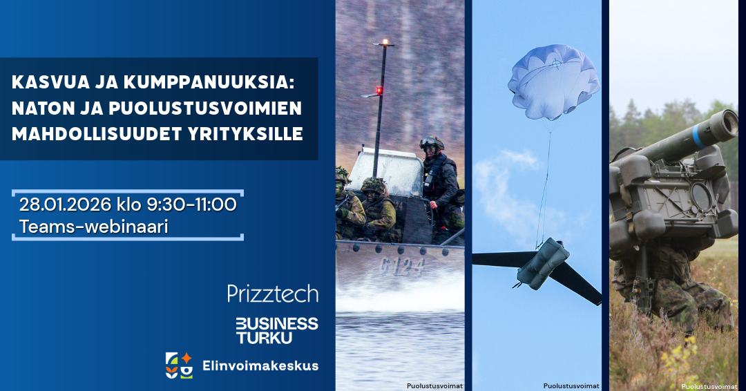Suomen NATO-jäsenyys avaa yrityksille ainutlaatuisia kasvumahdollisuuksia. Lounaissuomalaiset yritykset saavat webinaarissa ajankohtaista tietoa siitä, minkälaisia tuotteita ja palveluja ne voivat tarjota laajenevalle puolustussektorille. Lisäksi luvassa on käytännön vinkkejä siitä, miten yritykset voivat hyödyntää uusia kansainvälisiä verkostoja.