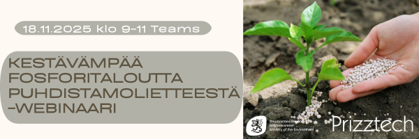 Kestävää fosforitaloutta puhdistamolietteestä -webinaari