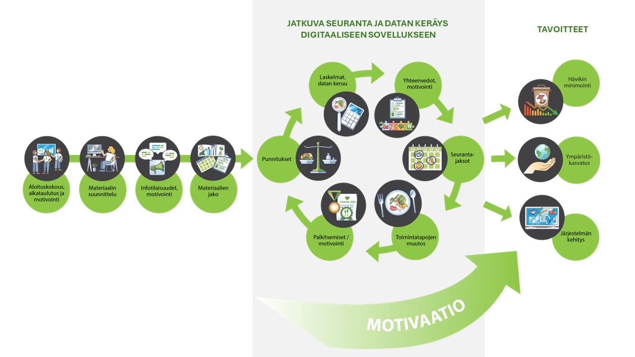 - Arvioidaan ohjelman vaikutus ruokahävikin vähentämisessä ja laajennetaan toimintamallia muihin alueisiin.